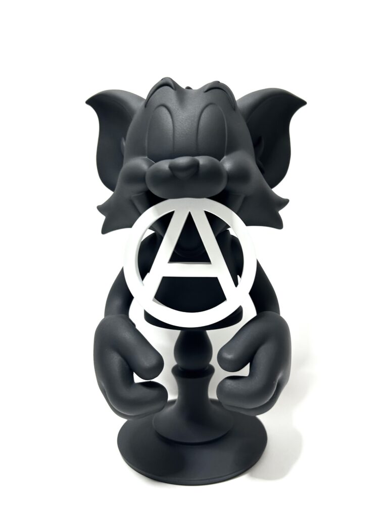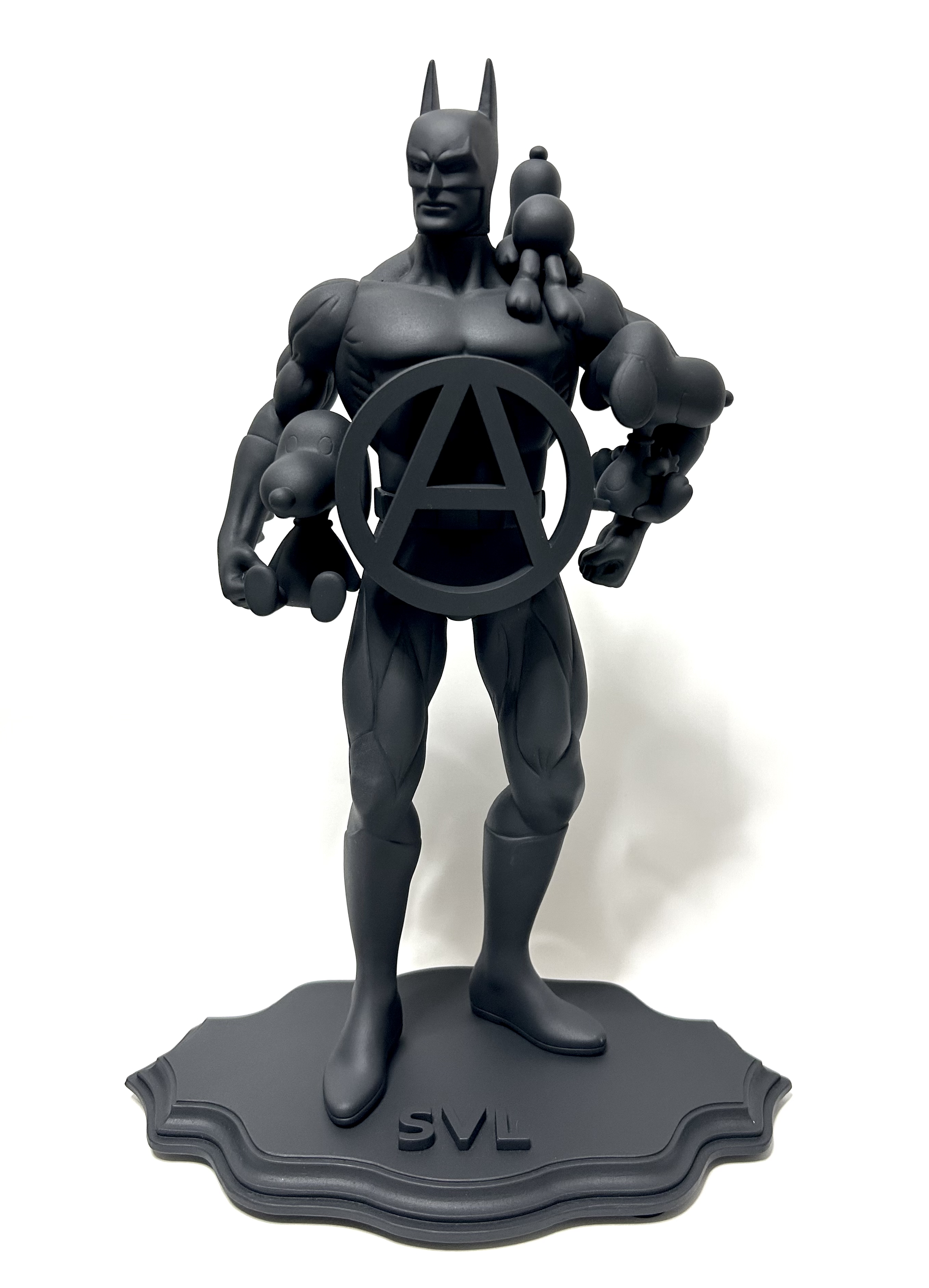 A consistent matte black color is a distinctive feature of SIVELIA’s work. In addition to his figures, he also creates two-dimensional paintings in monotone colors.